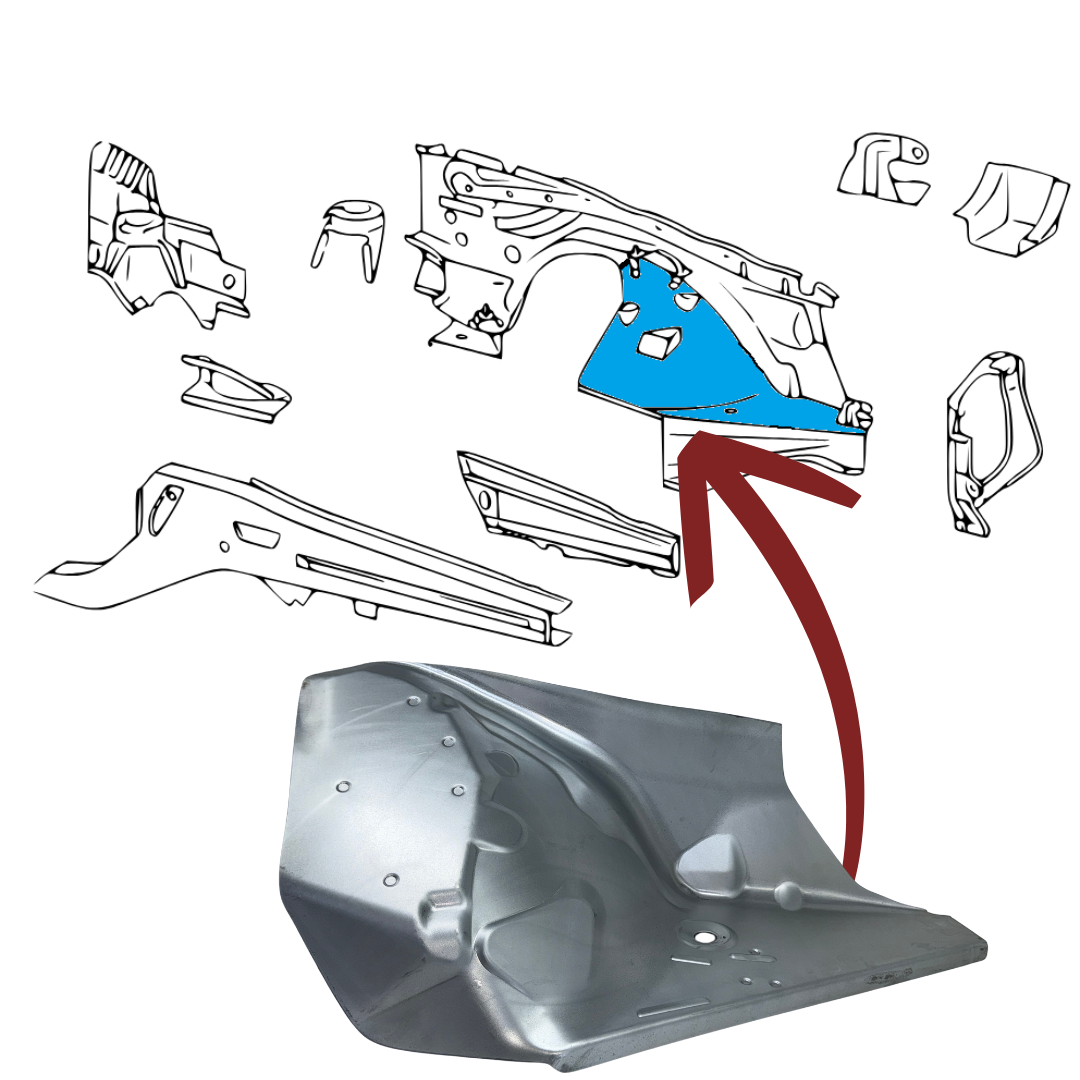 Eine ordnungsgemäße Reparatur erfordert einen großflächigen Austausch der betroffenen Metallteile. Unsere hochwertigen Reparaturbleche bzw. Einschweißbleche für die Innenkotflügel passen zu 100% originalgetreu. Dank ihrer hohen Materialstärke kann die Instandsetzung schnell und professionell durchgeführt werden.